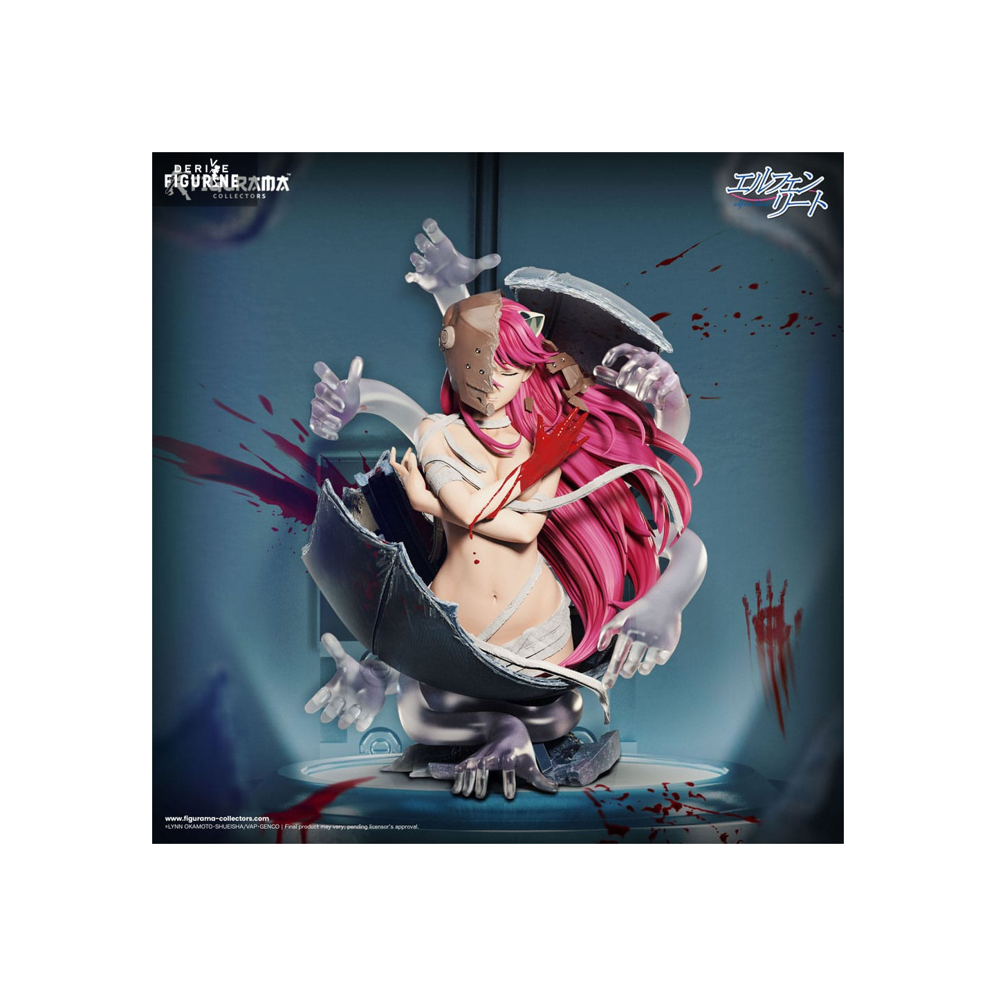 At the crossroads of psychological drama and visceral horror, Lucy embodies the most haunting duality of the Elfen Lied universe. This official bust captures her in a symbolically charged moment — one where pain, memory, and silent violence intertwine. The dark setting and sculptural energy reflect her complex nature.