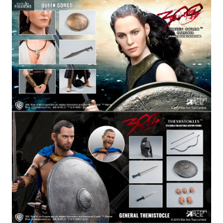 You have two versions 2.0 of characters that come straight to us from 300. At first we have Queen Gorgo, with his black outfit, his sword and his shield, and on the other hand we have General Themistocles with all his weapons and his accessories.