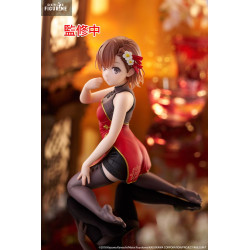 Official figure of Mikoto Misaka, Chinese Dress in PVC which measures approximately 13 centimeters high. It is from the Desktop Cute Figure collection. The manufacturer is Taito.