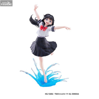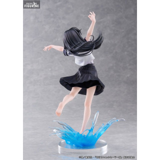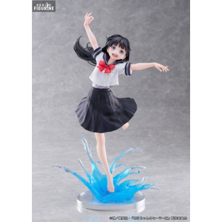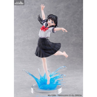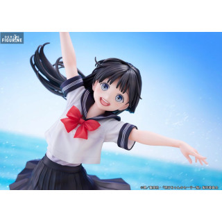 The figure of Komichi Akebi in summer uniform is a true masterpiece. Sculpted with painstaking attention to detail, it captures Komichi in a dynamic, lively pose, appearing to jump happily from a splash of water. Her summer outfit consists of a black pleated skirt and a white sailor collar top with a red bow, faithfully reproduced to reflect the iconic uniform of the series.
