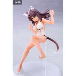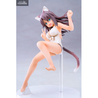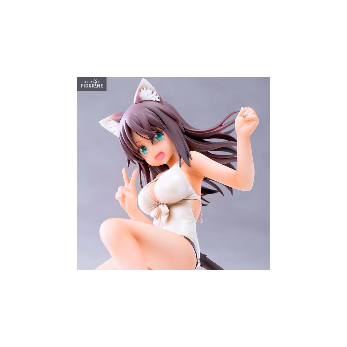 Kaneshiya Sitara is a really cute and radiant young woman. She put on a pretty white one-piece swimsuit and cat ears and tail that make her look even cuter. If you're not a big fan of nekos, you can always remove these accessories and display him in a more standard way.