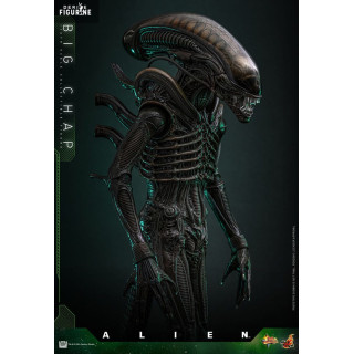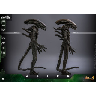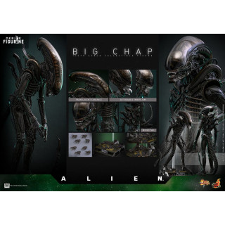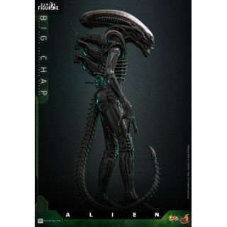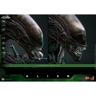 Big Chap is shown in his full threatening stance: tall, lean, with articulated limbs, a curling tail, and a translucent dome revealing internal structures. The extendable inner jaw is included, ready to strike. Every detail recalls H.R. Giger’s chilling design.