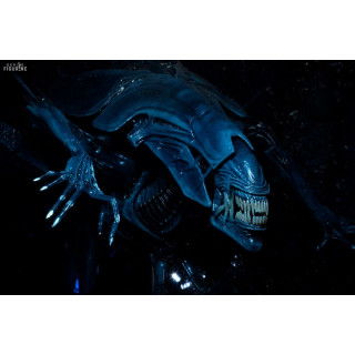 The Alien Queen Ultra Deluxe embodies the ultimate ruler of the Xenomorph hive, commanding her brood with unmatched power. Massive and menacing, she combines raw strength with a perverse maternal instinct: her imposing crenellated carapace, dorsal spines, and translucent dome mark her high rank, while her articulated limbs and deadly tail attest to her unparalleled ferocity.
