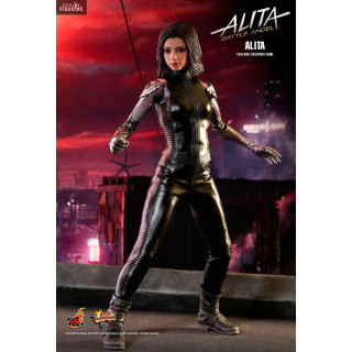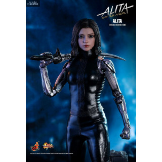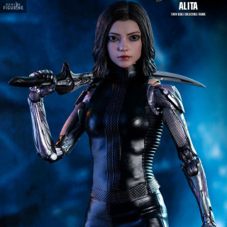 Official figure of Alita measuring about 27 centimeters high, scale 1/6. It is from the Movie Masterpiece collection. The manufacturer is Hot Toys.