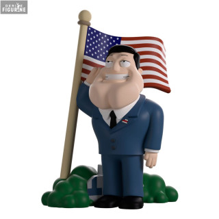 The Youtooz silhouette captures his iconic features: an oversized head atop a compact body clad in his navy suit, white shirt, and red tie, all faithfully rendered in smooth vinyl. In this rendition, Stan stands with hands proudly on his hips, showcasing his rigid yet endearing stance.
