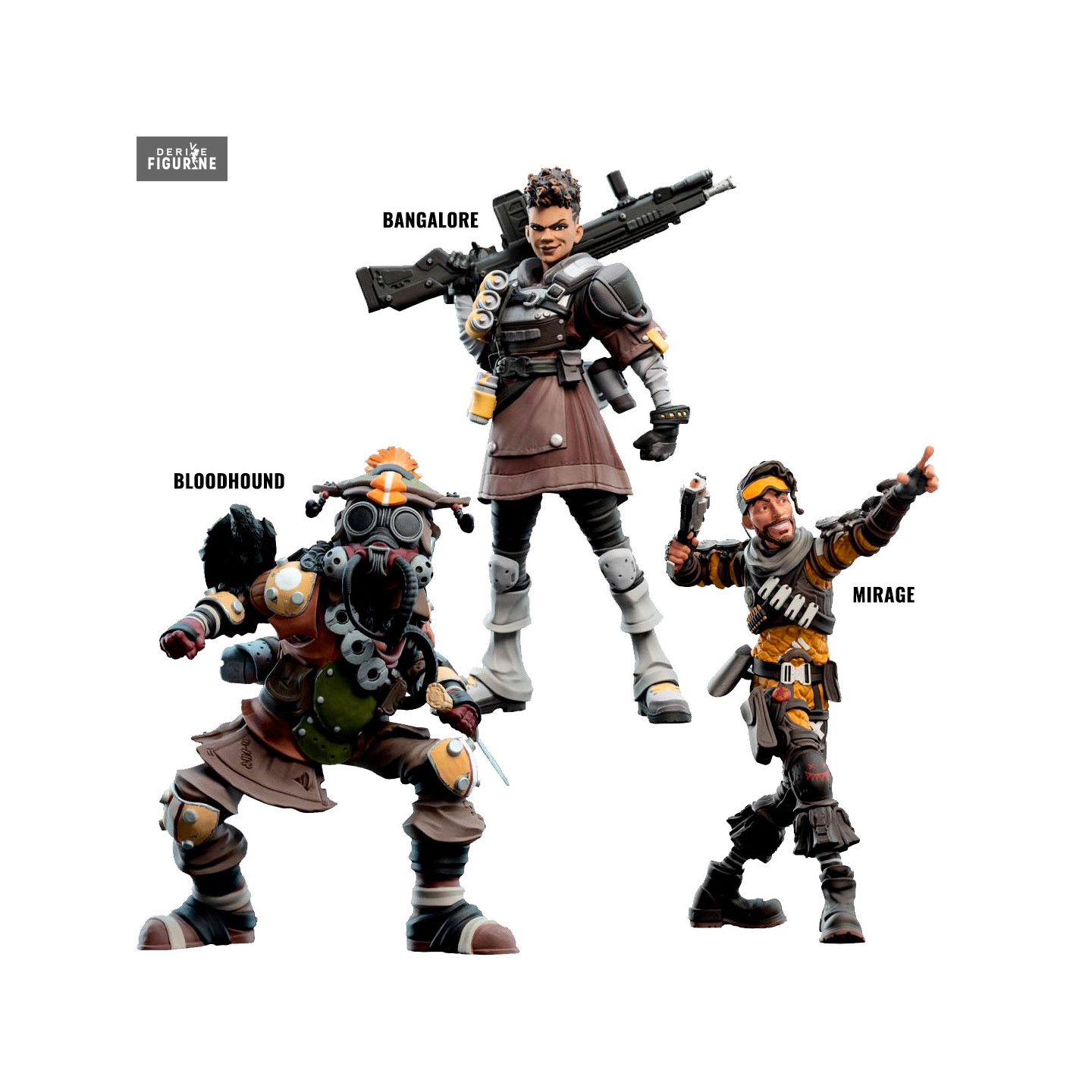 Official figure of your choice between Bangalore, Bloodhound or Mirage in vinyl. It is from the Mini Epics collection. The manufacturer is Weta Workshop.