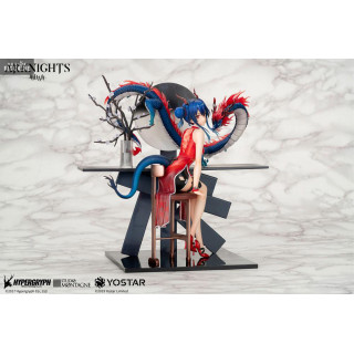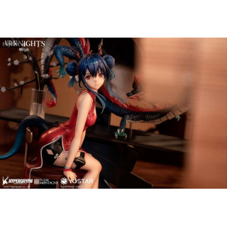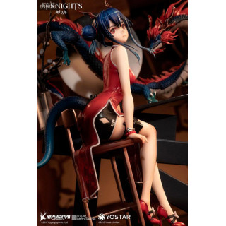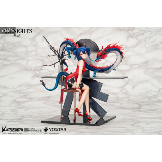 Ch'en is one of the characters you can find in the Arknights mobile game. As head of the special inspection unit, she must collaborate with Rhodes Island. Here you can see her in a red kimono, matching her shoes and her hairstyle and the tail on her back reminiscent of the dragon behind her. The whole gives a truly magnificent statuette which takes up the illustration of its ageless afterglow version.