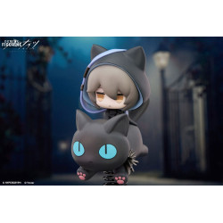 The figure stays true to Phantom’s signature color scheme—black, gray, and soft blue—with pink accents on the cat’s paw pads. His oversized hoodie, bored expression, and the cat’s blank stare make for a quirky and lovable duo. It’s a peaceful moment frozen in time, far from the intensity of combat.