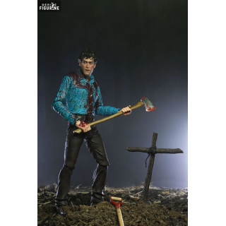 Manufactured by NECA and part of the Ultimate collection, these figures stand approximately 18 centimeters tall. Each figure is articulated, allowing you to recreate the most intense and memorable scenes from the film. The Bloody Ash figure is dressed in his iconic blue shirt, now stained with blood, with a facial expression of determination mixed with horror, true to his battle against the Deadites. Accessories included for Ash, such as the bloodied chainsaw, shovel, axe, and interchangeable hands, allow for customized poses and scenarios.