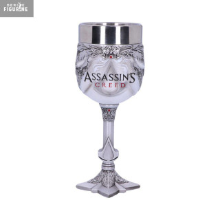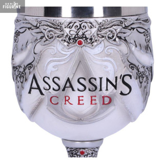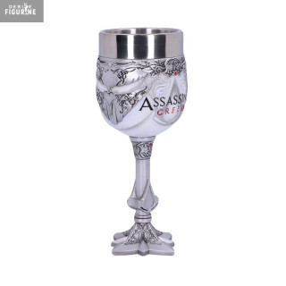 Official chalice of Assassin's Creed logo in resin/stainless steel which measures approximately 18 centimeters high. The manufacturer is Nemesis Now. Do not put in the dishwasher.