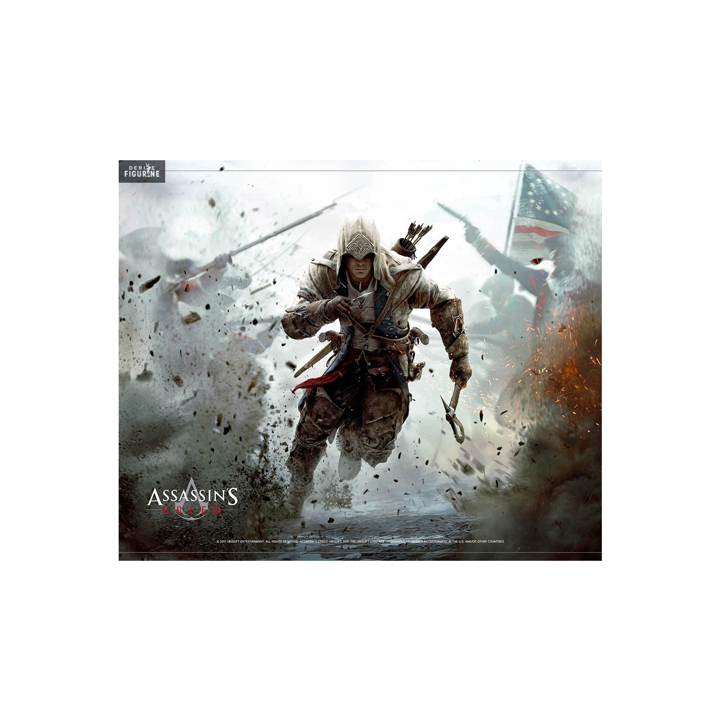 The fight between the assassins and the Knights Templar is still not over and this time it is Connor (or Ratonhnhake: ton) who takes over. In any case, on this cloth poster we can see our hero in the middle of the battlefield.