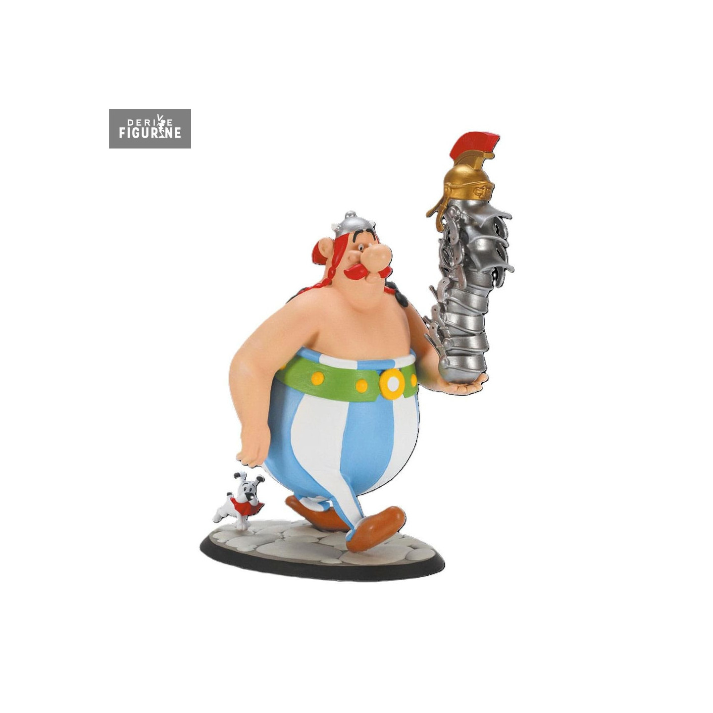Official figure of Obelix, Stack of Helmets and Idefix in PVC. The manufacturer is Plastoy.