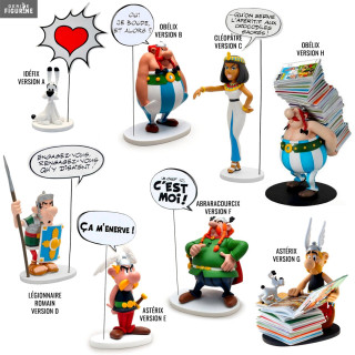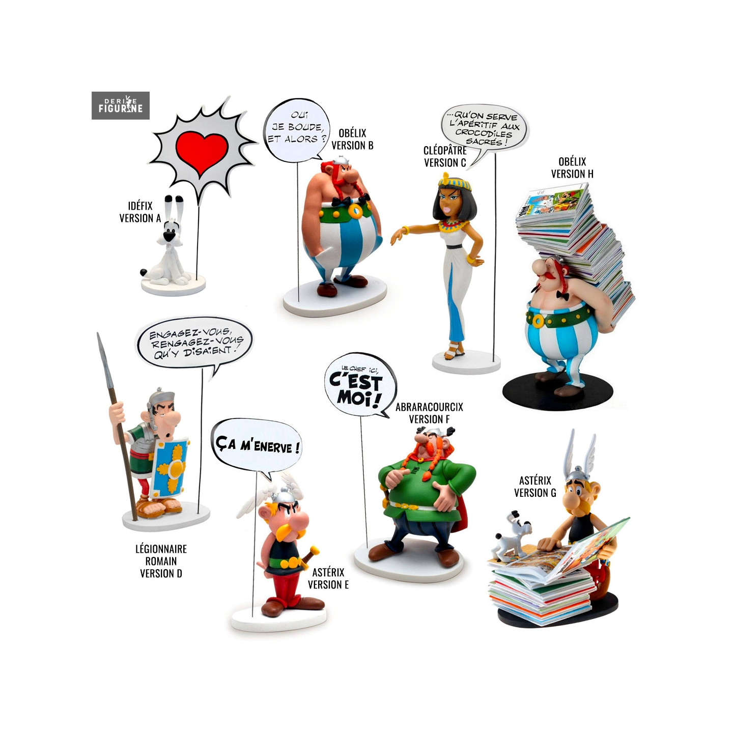 Official figure of your choice between Idefix (Version A), Obelix (Version B ou H), Cleopatra (Version C), Roman Legionary (Version D), Asterix (Version E ou G) or Abraracourcix (Version F) in resin (voir details in description). The manufacturer is Plastoy.
