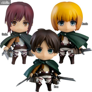 Official figure of your choice between Eren Yeager, Armin Arlert or Sasha Braus in PVC which measures approximately 10 centimeters high. It is from the Nendoroid collection. The manufacturer is Good Smile Company.