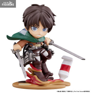 The "Eren Yeager, PalVerse" figurine is a representation of the character Eren Yeager from the series "Attack on Titan" (Shingeki no Kyojin in Japanese). PalVerse is a collection of character figurines from different franchises, designed to capture the essence of these characters and present them in a chibiized way. Eren Yeager is one of the main characters of "Attack on Titan". He begins as a young man living in a city surrounded by massive walls to protect against the titans, gigantic humanoid creatures that devour humans. After a horde of titans breaks through these walls and kills his mother, Eren joins the army to seek revenge and protect humanity. As the series progresses, he becomes more and more complex, his quest for revenge transforming into a desire for freedom for his people. The "Eren Yeager, PalVerse" figure captures an iconic pose of the character, reflecting his determination and fighting spirit. The details and manufacturing quality are careful to best represent the character as he is in the series. This figure allows fans to display their affection for Eren and "Attack on Titan" in their collection.