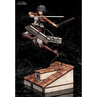 The "Mikasa Ackerman" figurine from the Attack on Titan series, offered in DX version by Good Smile Company, is an exceptional piece for any fan of the series. Mikasa is depicted in a dynamic pose, in mid-flight, wielding three-dimensional maneuvers with grace and determination. What sets the DX version of this figure apart is the detailed base which represents a roof typical of the architecture of buildings in the Attack on Titan universe. This base adds a touch of authenticity to the figurine by recreating the urban environment of the series, thus reinforcing the collector's immersion in the world of the anime. Good Smile Company is renowned for the quality of their figures, and this DX version of Mikasa Ackerman is no exception. It perfectly captures the essence of the character and his skill in handling three-dimensional maneuvering equipment. This figure would be an impressive addition to any Attack on Titan collection, allowing fans to celebrate one of the series' most iconic characters and immerse themselves back into the gripping action of the Titans universe.