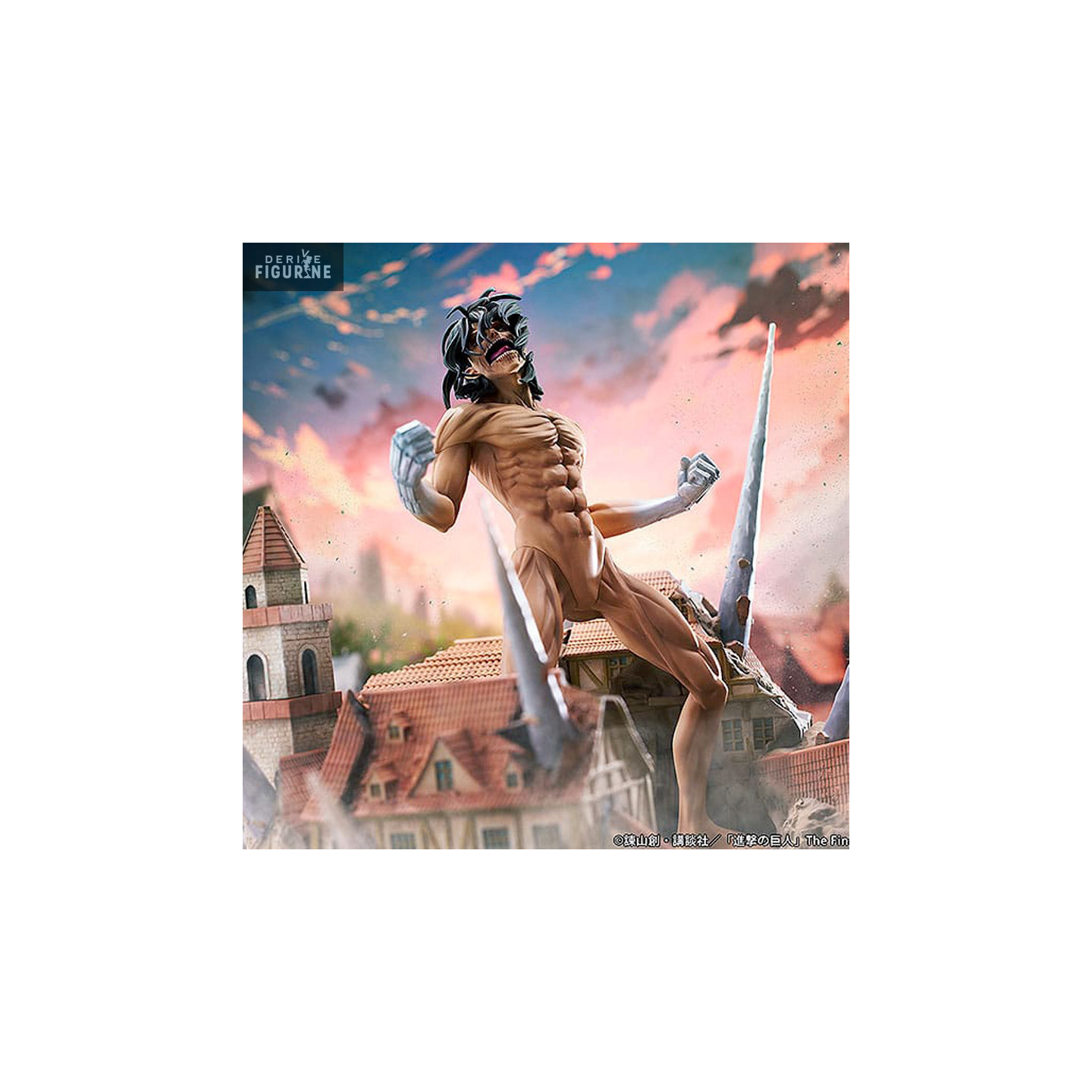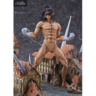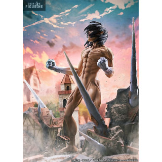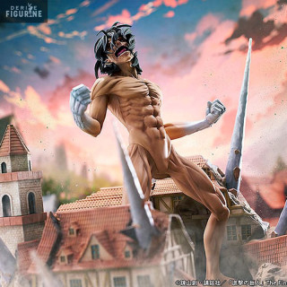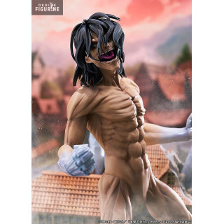 The detailed sculpt highlights the raw power of the Attack Titan, with Eren frozen in a dynamic pose, ready to take on his fearsome foes. The figure's impressive proportions reflect the Titan's colossality, creating an imposing presence that is sure to attract attention in any collection.