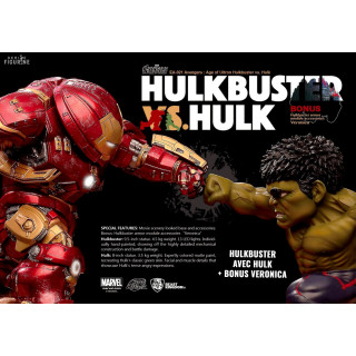 In the Age of Ultron, it can be said that Bruce Banner loses control of Hulk and follows a confrontation of size between Tony Stark in Hulkbuster armor and him. This mythical scene is immortalized with this figurine. Here are the options available to you: