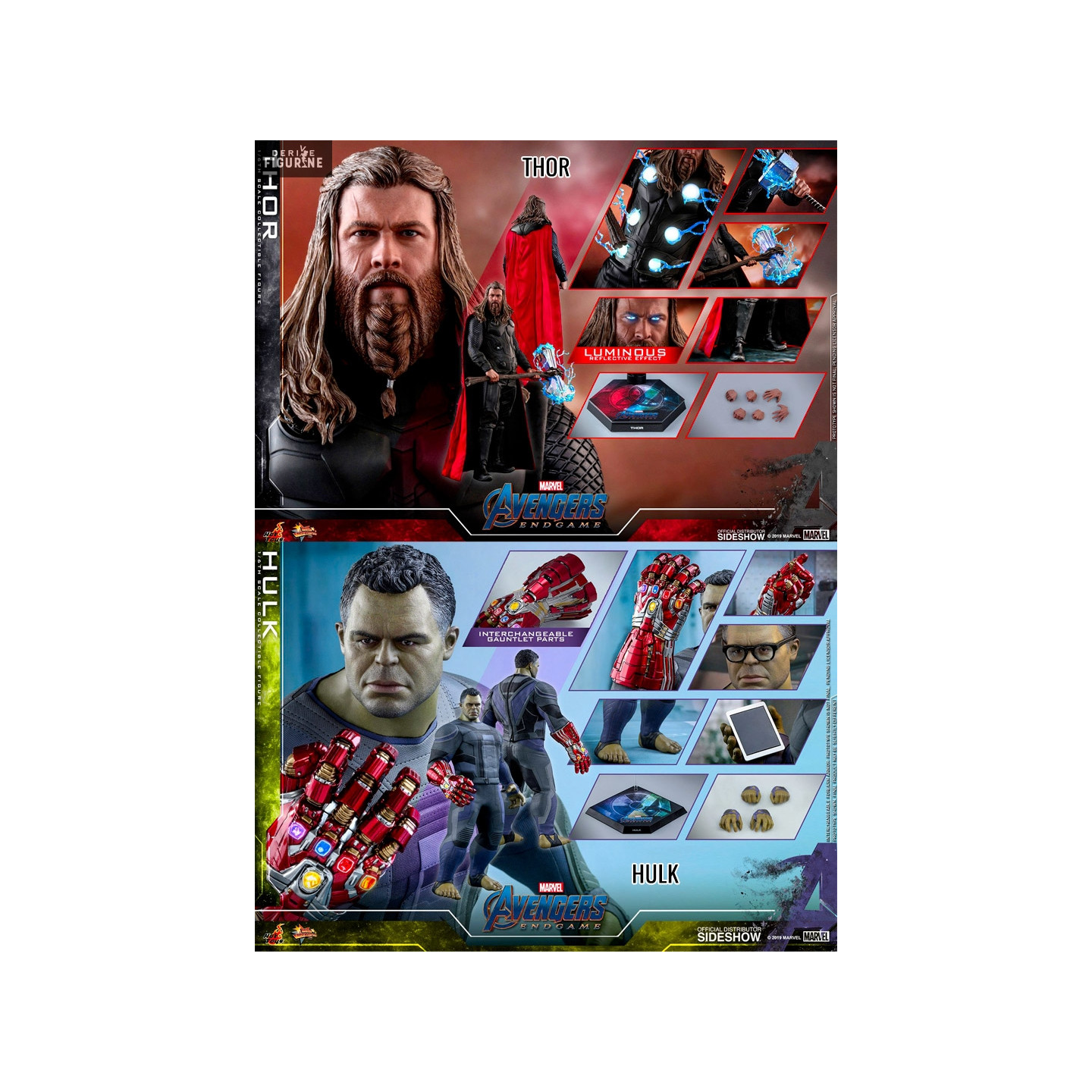 Official figure of your choice between Thor (~32 cm) or Hulk (~39 cm), scale 1/6. It is from the Movie Masterpiece collection. The manufacturer is Hot Toys.