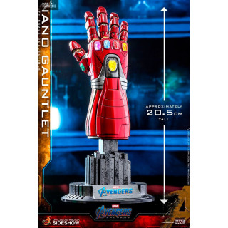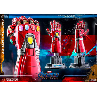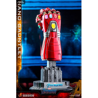 Official figure of Nano Gauntlet which measures about 20 centimeters high, scale 1/4. Works with 3 AAA batteries (not included). The manufacturer is Hot Toys.