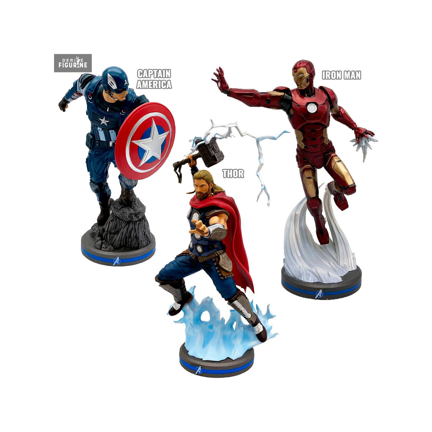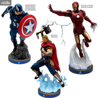 Official figure of your choice between Captain America (~22 cm), Iron Man (~22 cm) or Thor (~24 cm) in PVC, scale 1/10. The manufacturer is Pop Culture Shock.