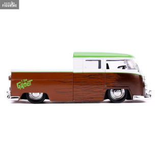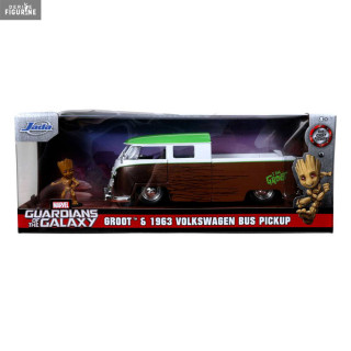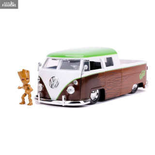Official figure of your choice between Groot + 1962 Volkswagen Bus, Black Widow + 1966 Chevy Corvette ou Venom + 2008 Dodge Viper SRT10 metal die cast and injected plastic vehicle, scale 1/24. It comes from the Hollywood Rides collection. The manufacturer is Jada Toys.