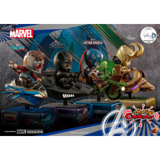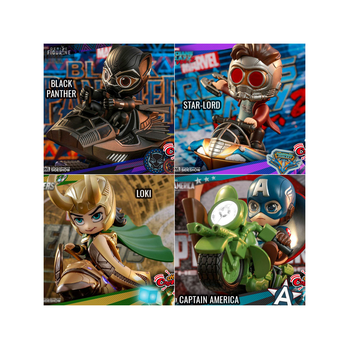 Official figurine of your choice between Black Panther, Star Lord, Captain America or Loki measuring approximately 15 centimeters high. It is from the CosRider collection. The manufacturer is Hot Toys.