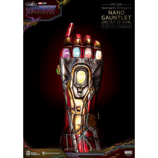 Official figure of Nano Gauntlet in resin which measures approximately 18 x 18 x 47 centimeters. It is from the Master Craft collection. The manufacturer is Beast Kingdom.