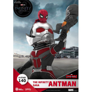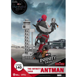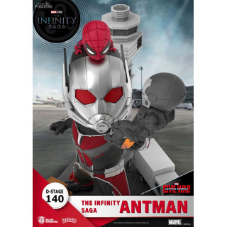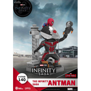 In the universe of the MCU Marvel The Infinity Saga, Tony Stark and Steve Rogers fought a war between the Avengers for their future! Here is the memorable scene of the airport where Ant-Man tumbles and uses his power to become giant, there is Spider-Man on him and War Machine right next to it! The figurine comes from the D-Stage collection.
