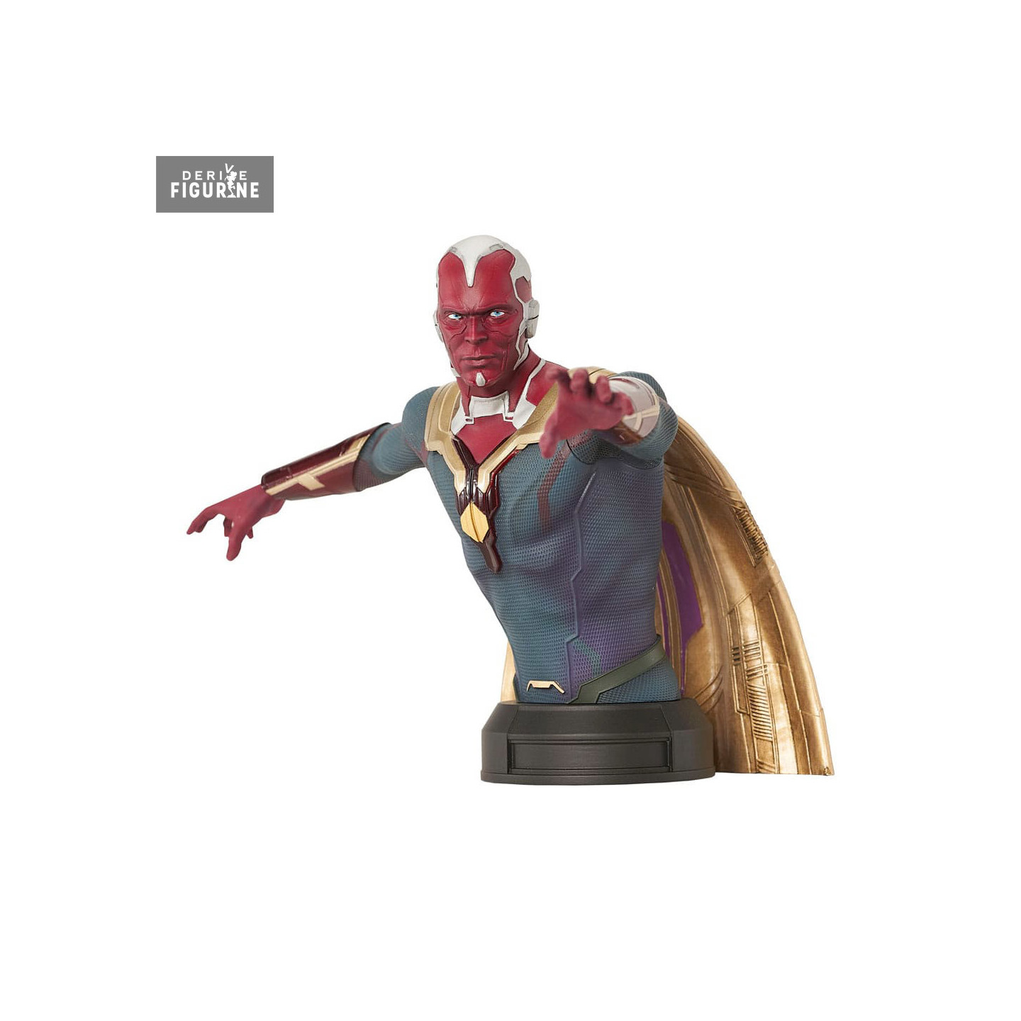 Official bust of Vision in resin which measures approximately 15 centimeters high, scale 1/6. The manufacturer is Diamond Select Toys.
