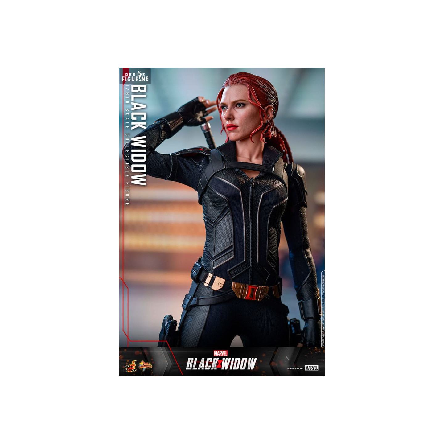 This 1/6 scale figure stands 28 cm tall and belongs to the Movie Masterpiece collection by Hot Toys. Made of PVC and metal, it faithfully captures the character’s on-screen design with exceptional detailing. The figure comes with multiple accessories, including two interchangeable head sculpts, a rolling eyeball system, escrima sticks, pistols, and alternative hands to recreate her most iconic poses. A customized display stand completes the set, making this piece a must-have for any Marvel collector.