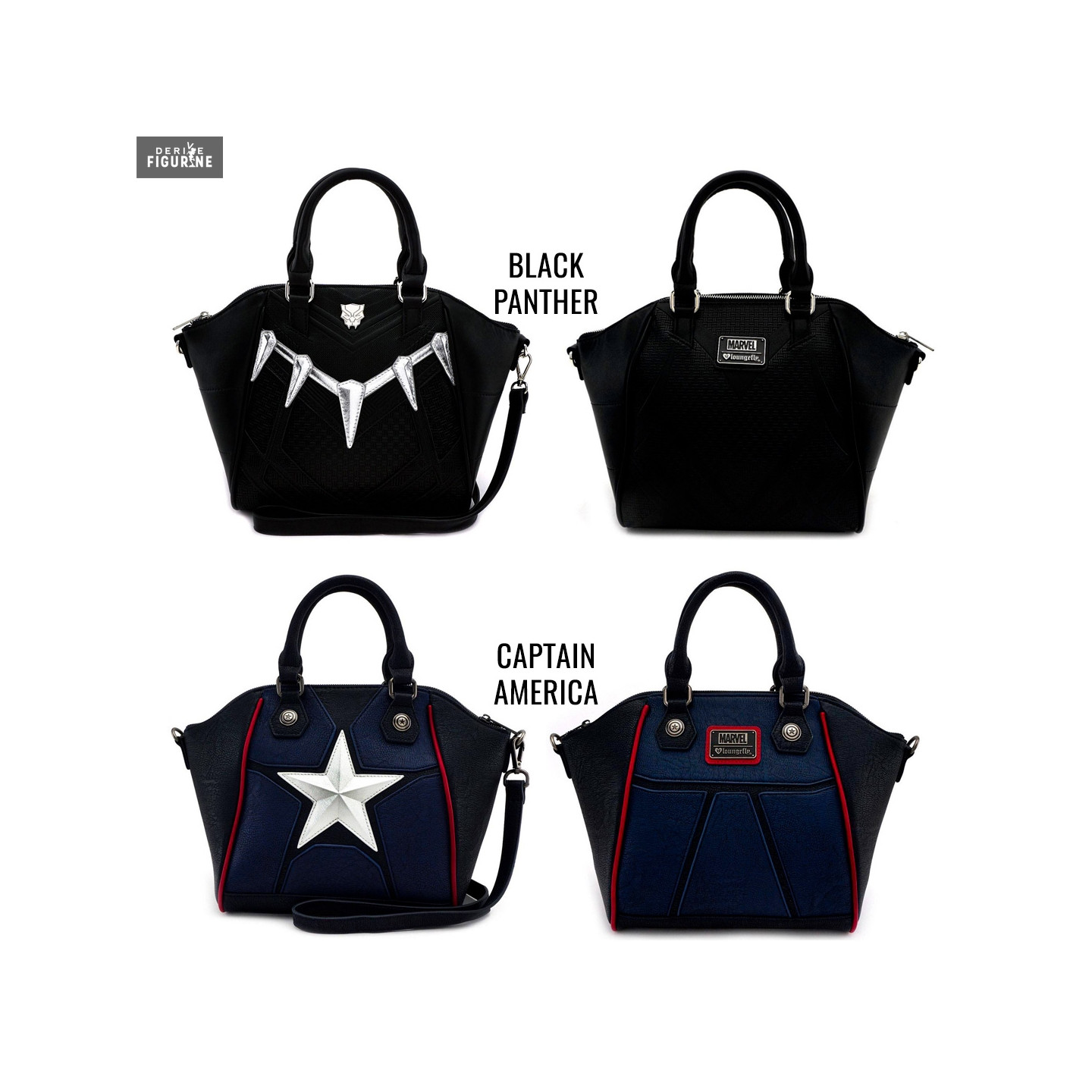 Official handbag of your choice between Black Panther or Captain America in synthetic leather which measures about 27x37x10 centimeters. The manufacturer is Loungefly.