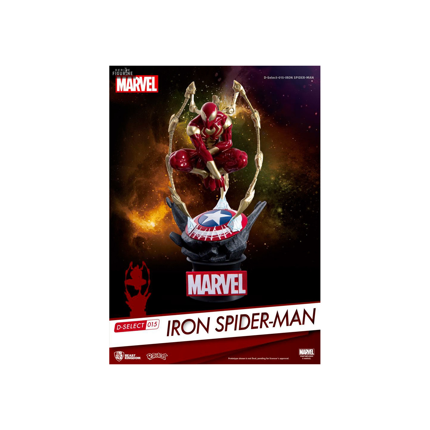 Official Iron Spider-Man figure in PVC which measure about 16 centimeters high. It is from the D-Select collection. The manufacturer is Beast Kingdom.