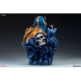 Official bust of Thanos in resin which measures about 27x18x35 centimeters. The manufacturer is Sideshow Collectibles.