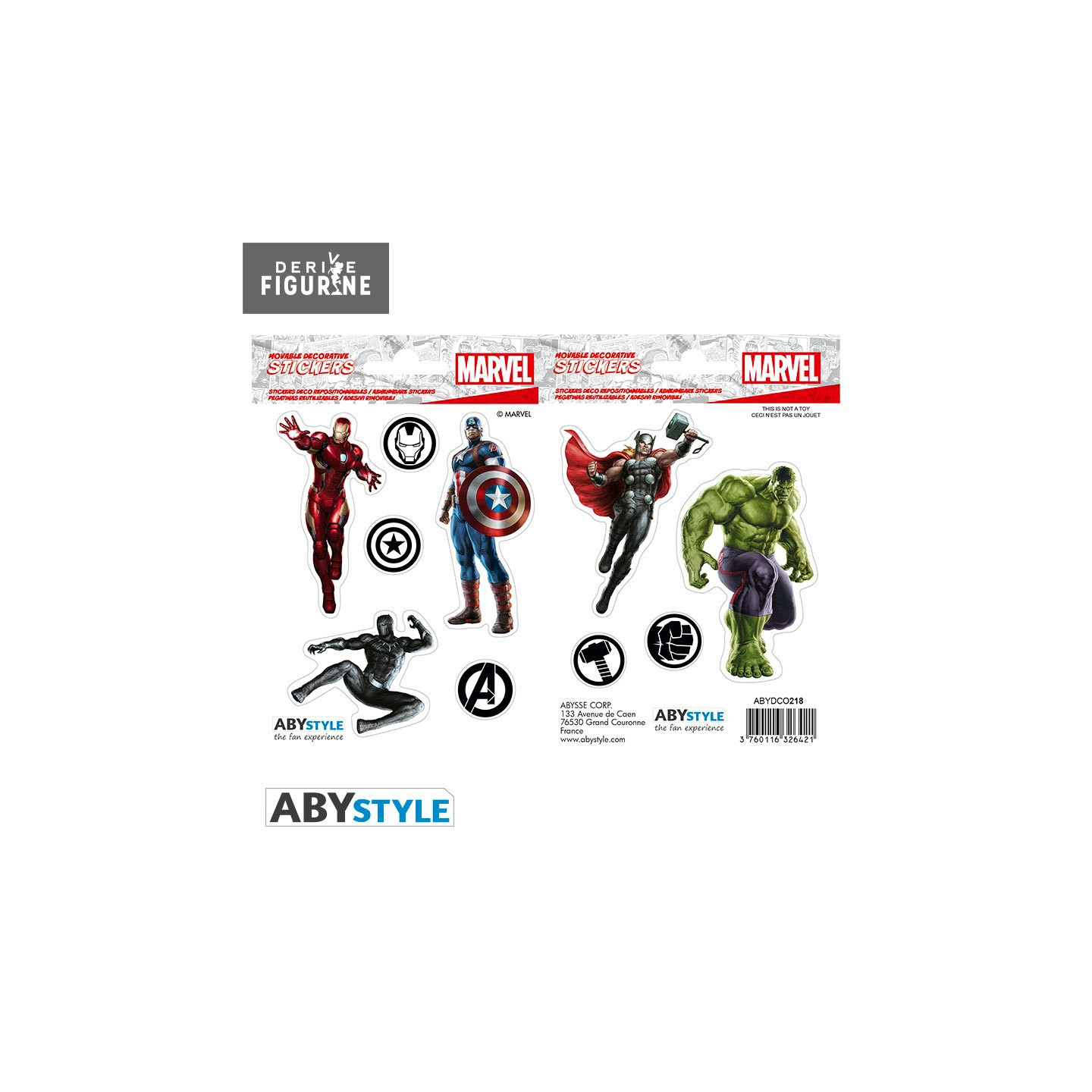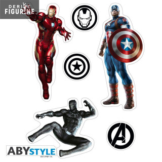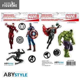 Mini removable stickers of Marvel - The Avengers including two boards that measure 16x11 centimeters. They contain ten pre-cut elements made of 100µ transparent vinyl. The manufacturer is ABYstyle.