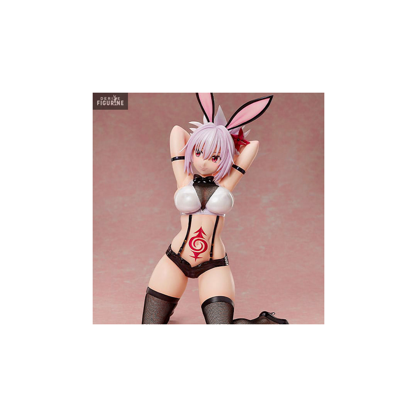 Matsuri Kazamaki is a man who descends from a line of exorcist ninjas. On the other hand, as you can see with this statuette, he can also take on the appearance of a woman and we can say that he is really sexy. On top of that, to make it even more so, he has real fishnet stockings, and rabbit ears.