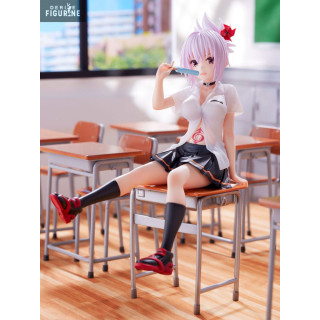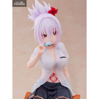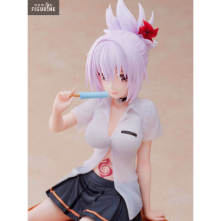 The Ayakashi Triangle anime features main character Matsuri Kazamaki, who is both the female and male protagonist of the story. In this figurine from the F:Nex collection, Matsuri can be seen in a dynamic pose, seated on a schoolgirl's table, enjoying an ice cream. Despite his calm appearance, Matsuri hides a fascinating history as the scion of a family of exorcist ninjas. This figure perfectly captures Matsuri's energy and relaxed attitude as he enjoys his snack.