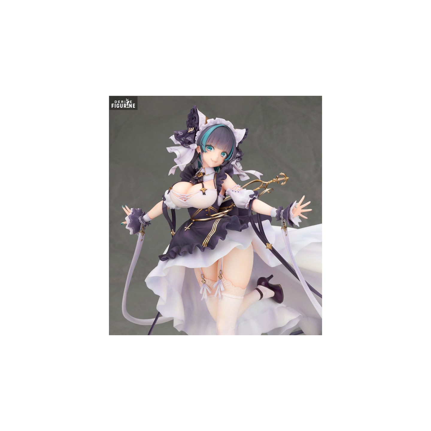 Her pose is a dance, a movement captured with such grace that we forget the fixity of the PVC. Cheshire is there, as if suspended in time, a mischievous smile on her lips, her eyes sparkling with azure blue mischief, who seems to share a secret with the one who knows how to catch her eye.