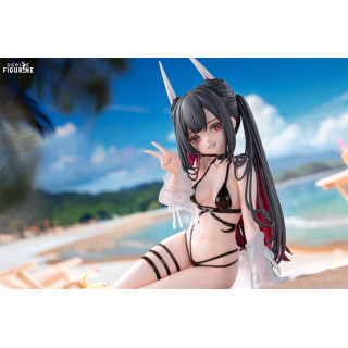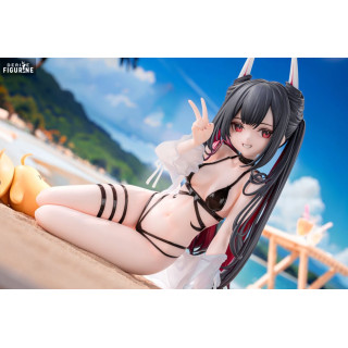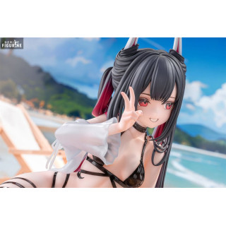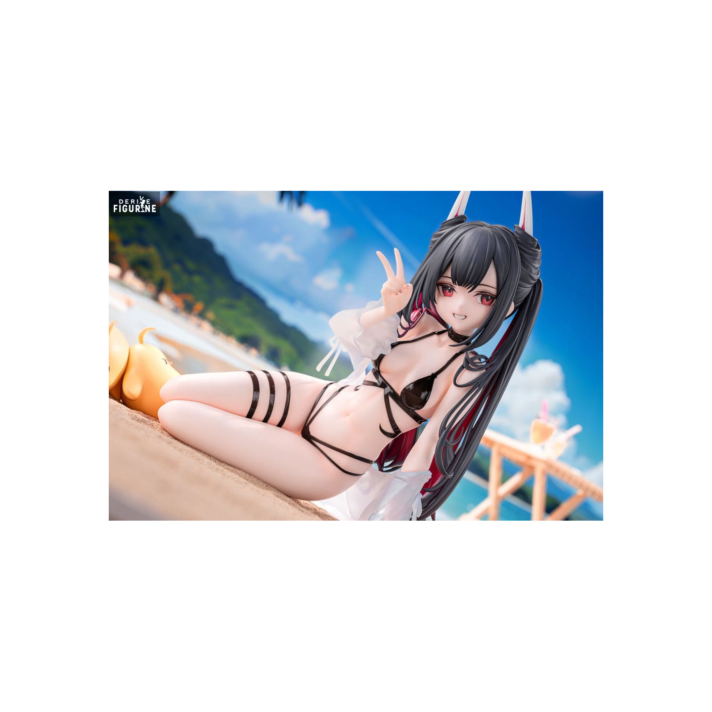 This figurine is presented in a black bikini, with straps and fine details that accentuate its elegant design. The precision of the details is remarkable, the black and red tones are brightly sculpted into the expressions of captivating faces that demonstrate his dynamic personality. The contrast between the curves and the brilliant finishes of his hair make it a touch of sophistication and realism. on the figurine.