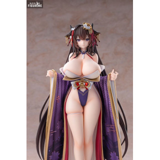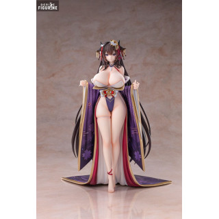 The “Robust Floral Strings” figurine features Kashino in a graceful and confident pose. Dressed in a magnificent purple kimono decorated with floral patterns, she exudes an aura of serenity and nobility. The kimono is open at the front, revealing a lighter, more sensual outfit that highlights her slender figure. The floral pattern details and gold borders add a touch of luxury and sophistication to the overall look.
