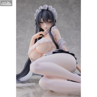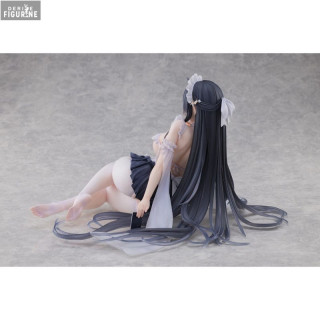 Taihou is depicted in a delicate and seductive pose, showcasing her elegance and charm. Every detail of her maid outfit has been meticulously sculpted, from the folds of her apron to the frills of her uniform. Her long black hair falls gracefully over her shoulders and down her back, adding a touch of dynamism to the figure. Her sweet and slightly shy expression is captured with great precision, making this figure even more captivating.