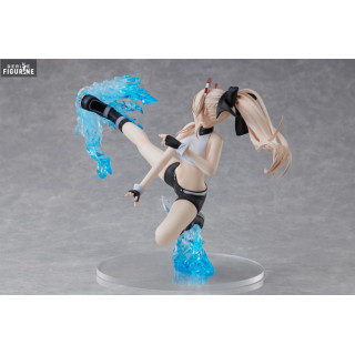 Ayanami is one of the most popular protagonists in Azur Lane, a mobile game where warships are personified as young women. Ayanami represents a destroyer from the Japanese fleet and is known for her calm and reserved demeanor, as well as her formidable combat skills. In this figure, Ayanami is depicted in mid-action, delivering a dynamic kick that unleashes an impressive wave of energy, materialized by translucent blue effects that add dynamism to the scene.
