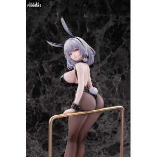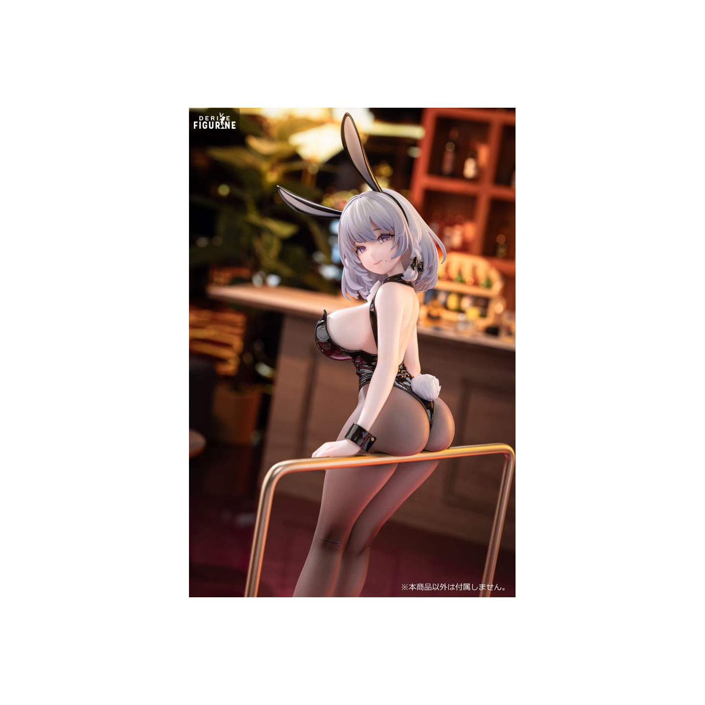 Known for her elegant appearance and air combat prowess, San Jacinto is a fan-favorite character. In this Flavor of the Day version, she is dressed in a signature black bunny girl outfit, adding a sensual yet mysterious touch. Her short, silver hair frames her face delicately as she poses confidently.
