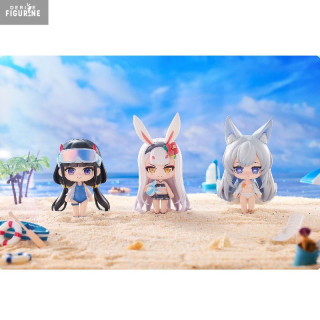 Each character features a unique swimsuit, highlighting their charm and distinct personality. From bunny ears adding a cute touch, to snorkeling goggles ready for an aquatic adventure, and summer accessories like beach balls, every detail makes this trio a must-have for chibi figure enthusiasts. The vibrant colors and quality detailing showcase Hanabee's craftsmanship, making these figures as fun to display as they are to collect.