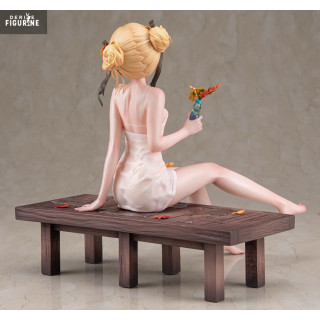 The world of Dead or Alive Xtreme Venus Vacation offers a relaxing experience where the heroines enjoy sunny activities and moments of leisure on a tropical island. Marie Rose, with her unique style and blonde hair adorned with ribbons, is one of the series' most beloved characters. This figure perfectly captures a serene moment after a warm bath, emphasizing her delicate beauty and peaceful demeanor.