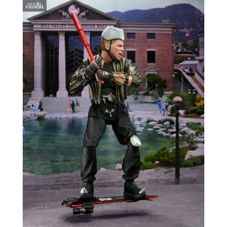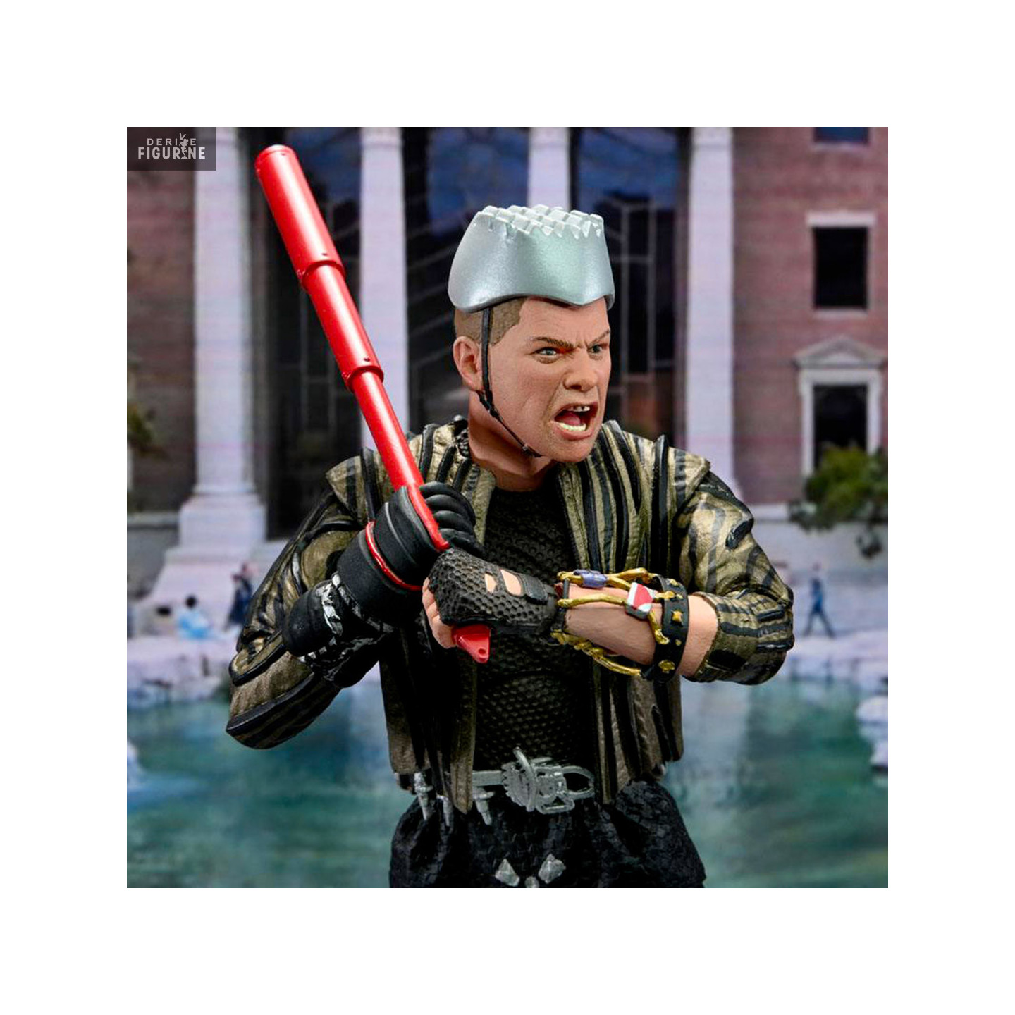 Griff Tannen, the villain of episode 2 of Back to the future is the grandson of the famous Biff Tannen. We find him in his futuristic outfit, accompanied by his telescopic bat and his hoverboard as an accessory, if you wish, you can even remove his helmet by replacing his head.