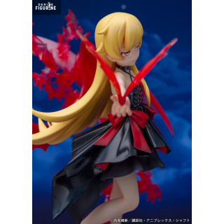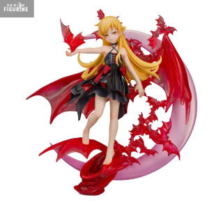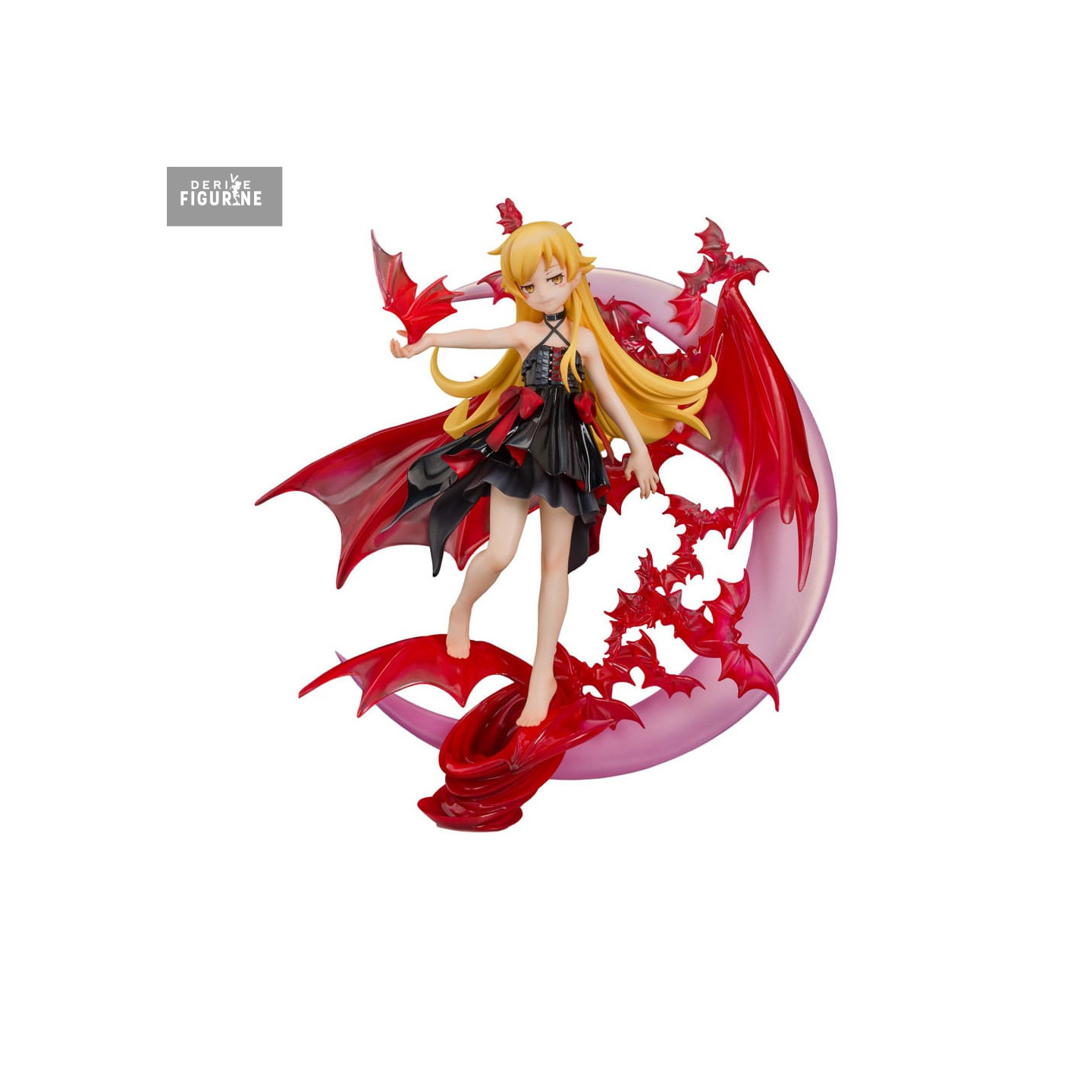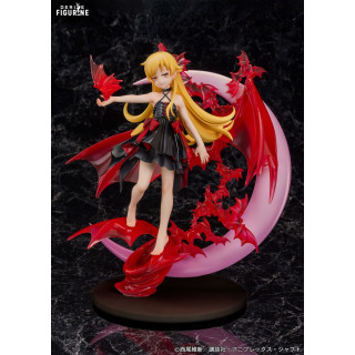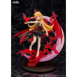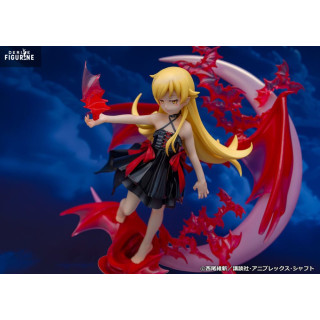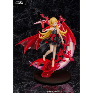 Shinobu Oshino, the ageless vampire with an enigmatic allure, is showcased in this official Proof figure. At 1/7 scale and approximately 24 cm tall, she is captured mid-motion, barefoot, wearing a stylized black-and-red dress, surrounded by translucent wings tinged with crimson and a blood-red crescent moon.