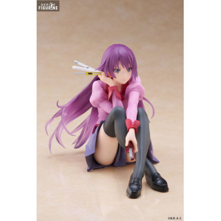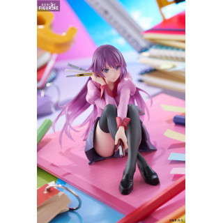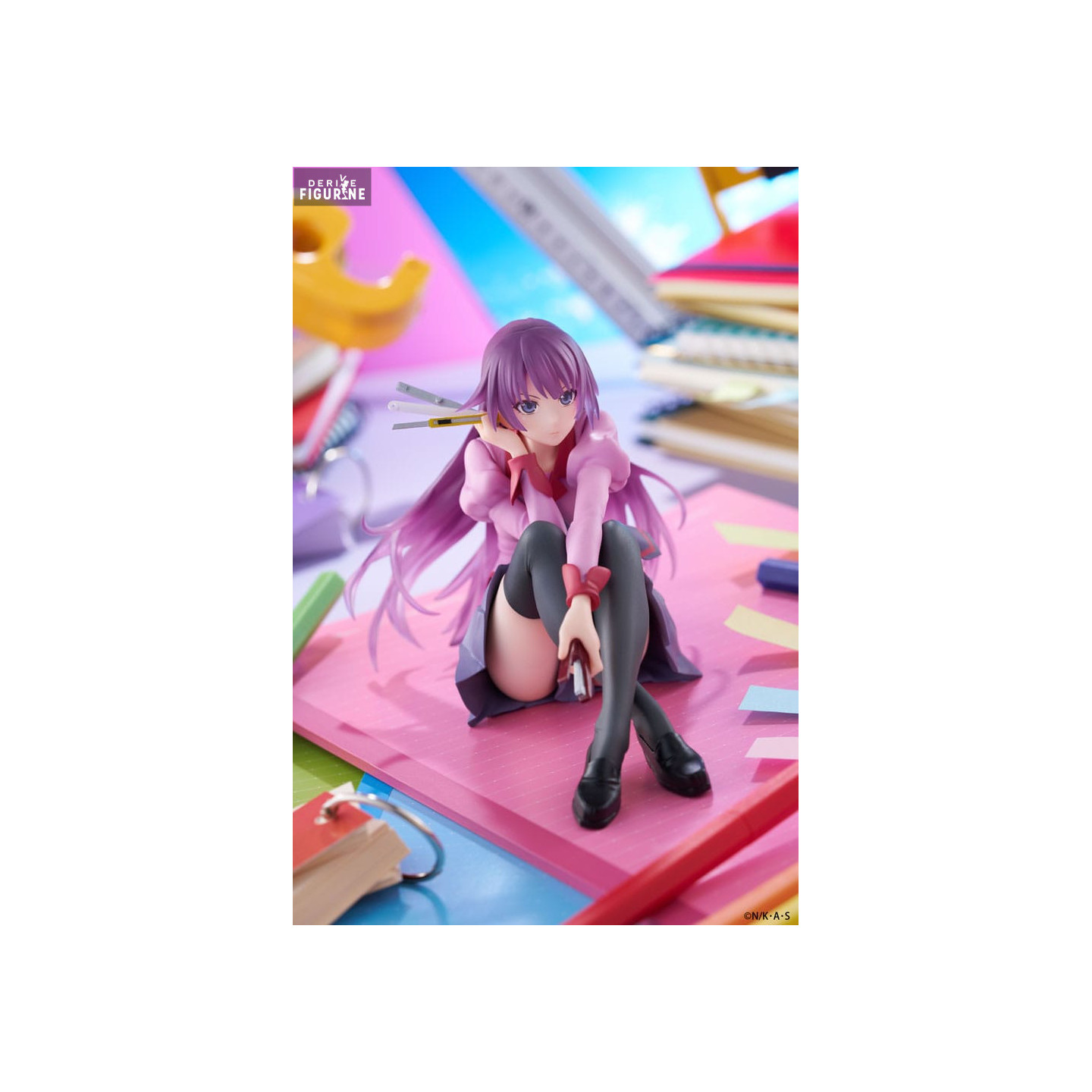 This Hitagi Senjougahara figure from Taito’s Desktop Cute Figure collection perfectly captures her charisma and signature aloof attitude. Standing 13 cm tall, she is posed in a relaxed manner, holding sharp stationery items, a direct nod to her sharp personality and supernatural connection. Her school uniform, flowing violet hair, and piercing gaze are meticulously recreated, making this an elegant and faithful representation of the character. A must-have piece for any Monogatari fan.