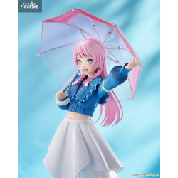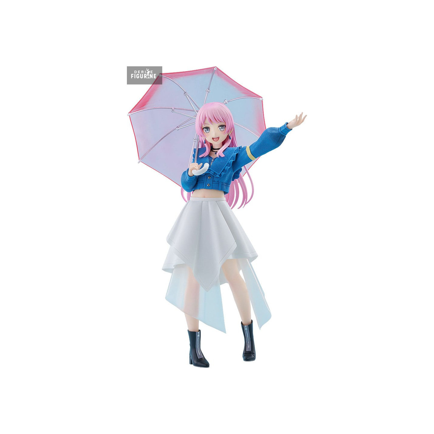 Her joyful expression, flowing pink hair, and the translucent pastel-colored umbrella she proudly holds emphasize her energy and stage charisma. The paintwork and sculpt bring out a design that is both simple and expressive.