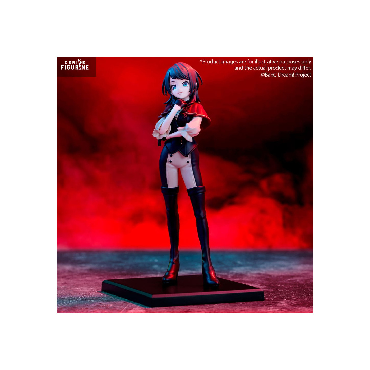 Bushiroad brings us a premium 18 cm PVC version that embodies her dark elegance. The pose — arms crossed, gaze steady — says everything: she knows exactly who she is and doesn’t need to prove anything. Her outfit, sleek and sharp — crimson cape, high-waisted shorts, black thigh-high boots — is reproduced with care, stylish without being overdone.